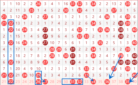 上期开出了连号22号数字,本期我们要注意一下出现一个重号的情况,重点关注一下22号数字走重的情况。本期的26号数字我们也是要防守一下出现重号的情况的。上期开出了21 24号数字,本期我们要注意一下27号数字的出号情况了。本期的30 31 32我们要注意出号情况,这里我要防守出现2连的情况。 本期的34号数字我们也是要关注一下,出号机会还是有的。本期的39号数字我们要重点注意了,既然上期的40号数字都能开出了,那么本期的39号数字我们就要注意了。