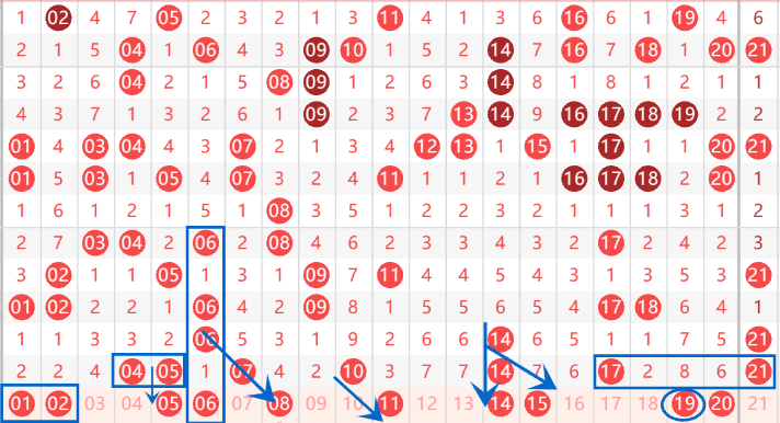 下图为01-20号数字区间走势分析图: