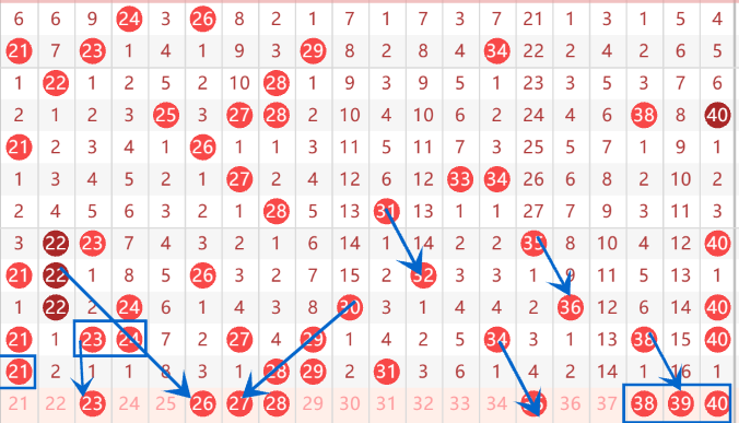 下图为21-40号数字去区间走势分析图: