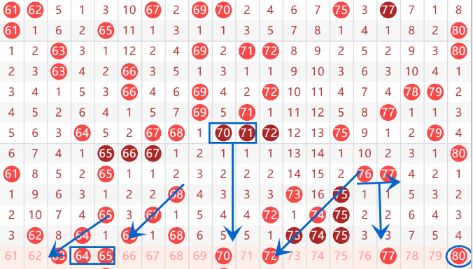 下图为61-80号数字区间走势分析图: