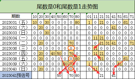 尾数0和1的走势:尾数0首先可以看到上期预测的空期落下号码20稳定落下了,