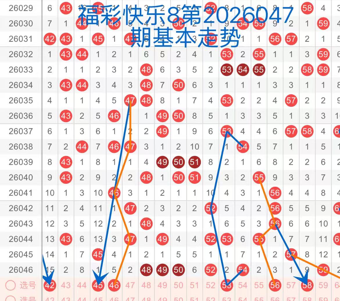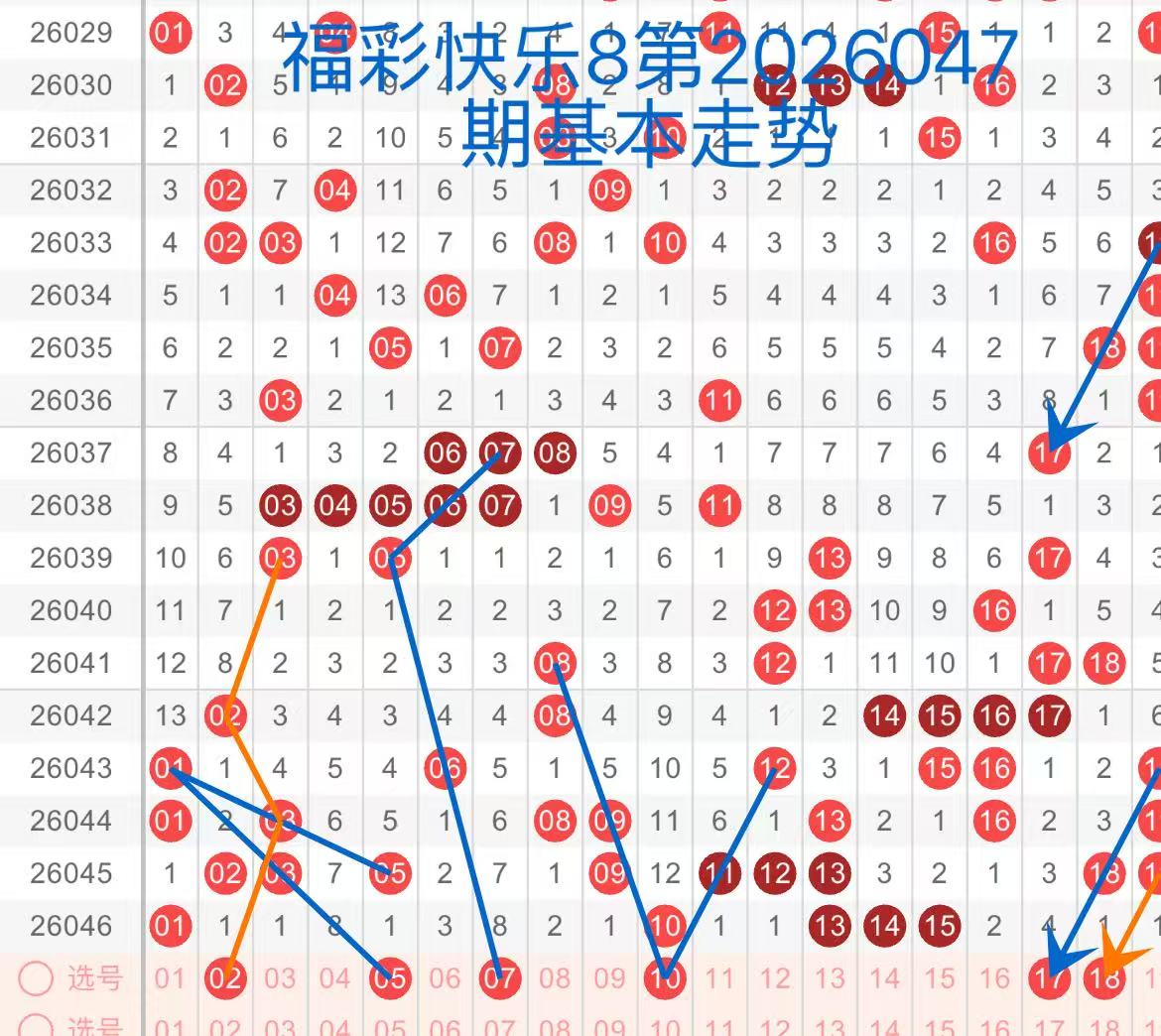 下面是我对2026047期福彩快乐8的分析和预判,希望通过我的分析能让大家今晚大满贯!福彩快乐8上期开奖号码如下图
