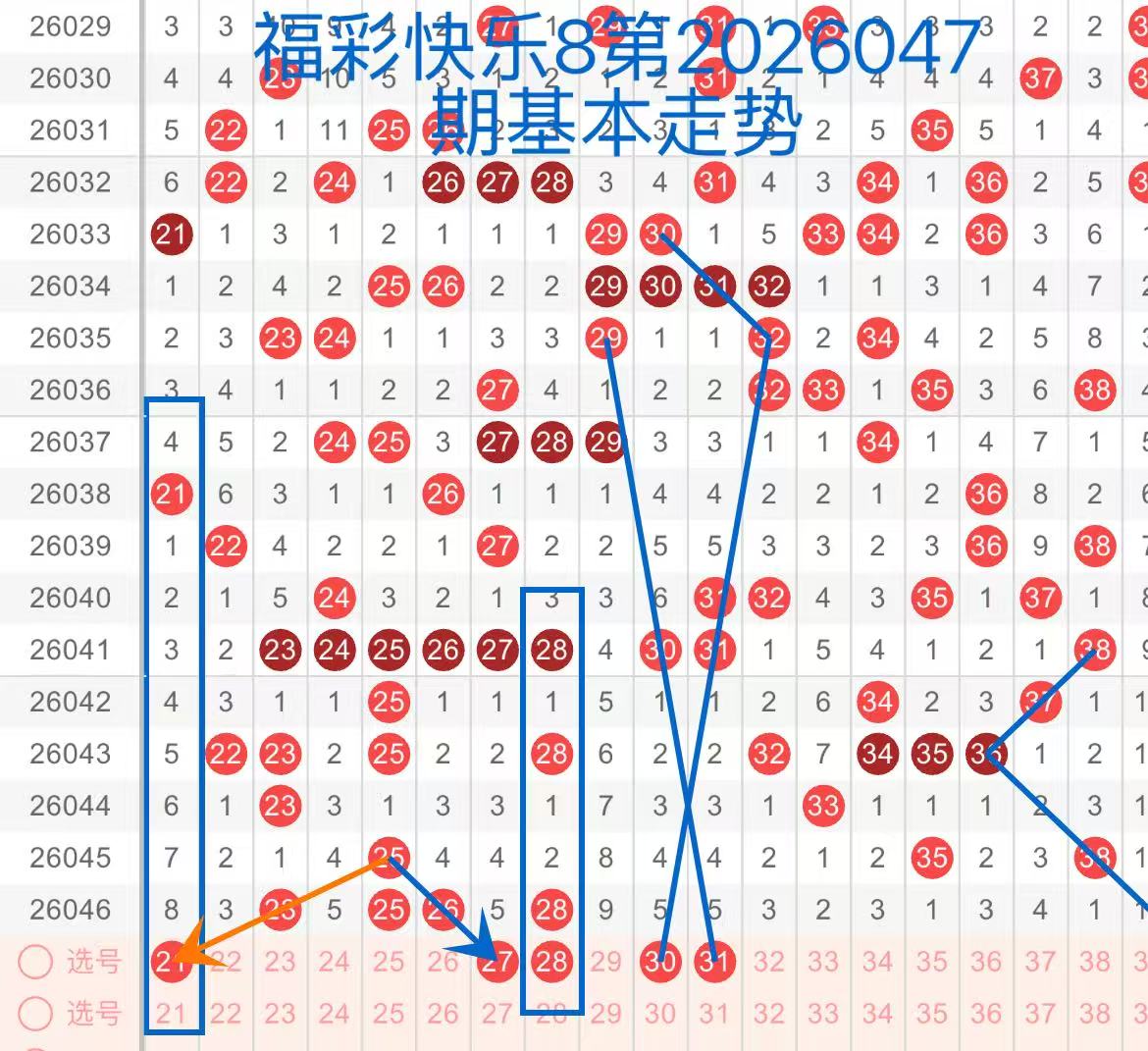 26047期福彩快乐8,走势综合分析(本期一胆参考53)