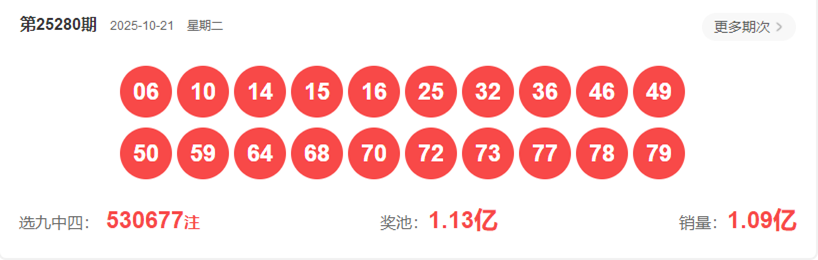 快乐8第2025280开奖如下