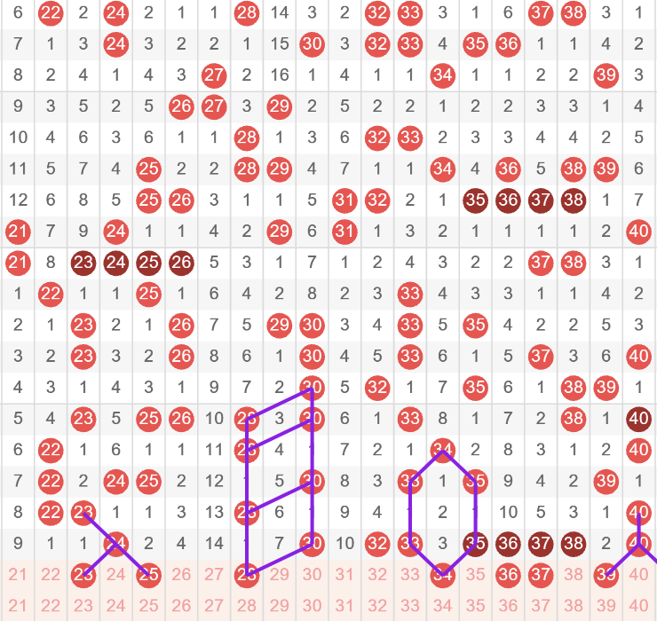 23 25今天这个是形态号,25 28它是一个非常漂亮的二选一点位的分边号,也有机会同时开出的,28的点位今天我比较喜欢,23 24 28很可能会开出一码;其中28是一个百期规律号;34 36今天关注两码组合, 是个同区间的热形态,稳妥可以选择一码当胆,34 36 37这里看的是有机会开出一码;