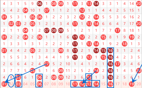 下图为01-20号数字区间走势分析图: