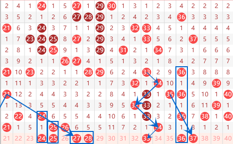 下图为21-40号数字区间走势分析图: