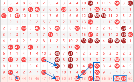 下图为41-60号数字区间走势分析图: