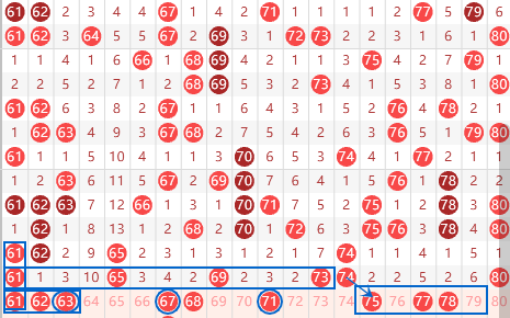 下图为61-80号数字区间走势分析图: