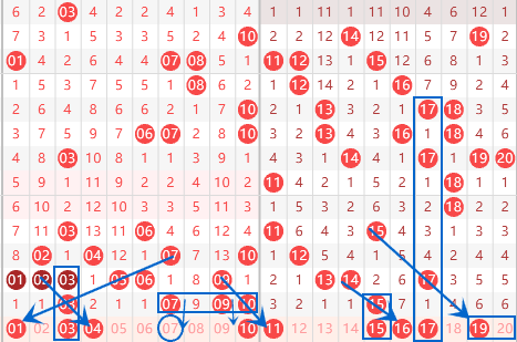 该区间三连号上期开出了03号数字,那么本期我们就要注意03号继续走重的情况了。01号数字我们也是要关注一下,落号机会还是有的。连号空一带号07 09 10本期我们我们也是要注意落重号下来的。本期的11号数字是属于V型号吗,我们可以注意一下出号情况。上期开出了15号数,那么本期我们要注意一下14 15 16的落号情况了。