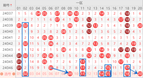 下图为01-20号数字区间走势分析图: