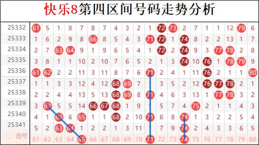 四区上一期布局凤尾的连码走势,结果号码热度过高出现了放空布局。本期四区首先注意重号依然是主线的下拉走势,所以布局上要注意三重走势的再次出现。目前四区呈现递减走势,区域空位加大,不排除继续走冷的可能性,所以四区要慎重对待。尤其70-77段已连续多期未见有效回补,冷态积压明显,存在断点反弹的技术需求。建议关注70与77的单点反弹机会,同时提防79-80末端双连缩码可能。可重点关注70与77的冷号突袭机会,配合74、76作为过渡衔接点,形成断档围猎布局。末端79-80需警惕缩码回抽,双连重现概率偏低,更可能以单枚收尾。整体走势显示四区动能持续衰减,防其再度空降重号或斜跳号扰乱节奏。鉴于三区趋稳、二区动荡,四区宜守弱位、搏反弹,避免追高热段,注码结构应向边缘倾斜,防范全区缩水至两枚甚至断档的极端形态。