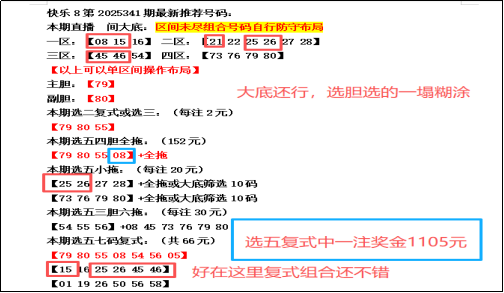 太行老赫快乐8第2025342期走势分析:上一期中出选五复式