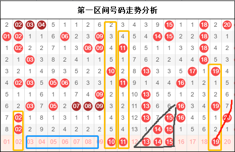 第一区间号码01-20,一区昨晚再次走冷是意料中的事,只是没想到后半段只出现了两个号码。从整个走势上看,一区未必见底。所以按照整体走势来看,一区这一期是极不稳定的一期,尤其是前半段,走势上一言难尽。就看大家的魄力如何了,在这里不成功便成仁。但是随着上一期号码14和15的出现,这里到底是不是一次完美的伏击,我们拭目以待。