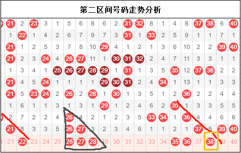 第二区间号码21-40,二区虽然在昨晚开出了六个号码,但是从整个走势上看的话,号码分散度比较大,俨然给这一期留出了三个可操作的空间。如果这一期图形能够成立那注定会是辉煌的一期。尤其是26 27的出现,更可能会延续这里的走势,毕竟前面在这里区间上走出了五连号。所以335期可以适当在这里发挥一下各位的想象力。