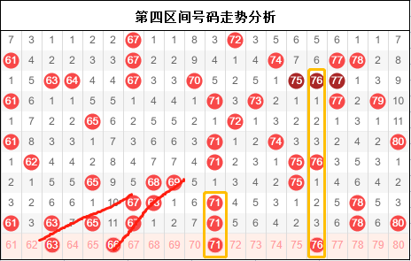 第四区间号码61-80,四区昨晚间隔号为王,出现的比较突兀。这种号码出现的时候,我们在前几期的二区和三区也曾主动出击,无奈这里没有形成我们想要的填补号码。对于四区这样的边缘区间来说,能不能走出我们期盼的走势,也许今晚这里会给到我们不一样的答案。所以这一期依然还是要参照昨天的格局区做号,也许会收到不一样的效果。