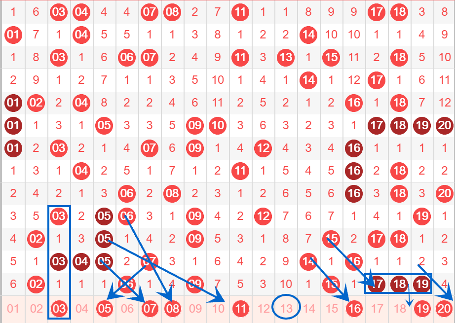 下图为01-20号数字区间走势分析图: