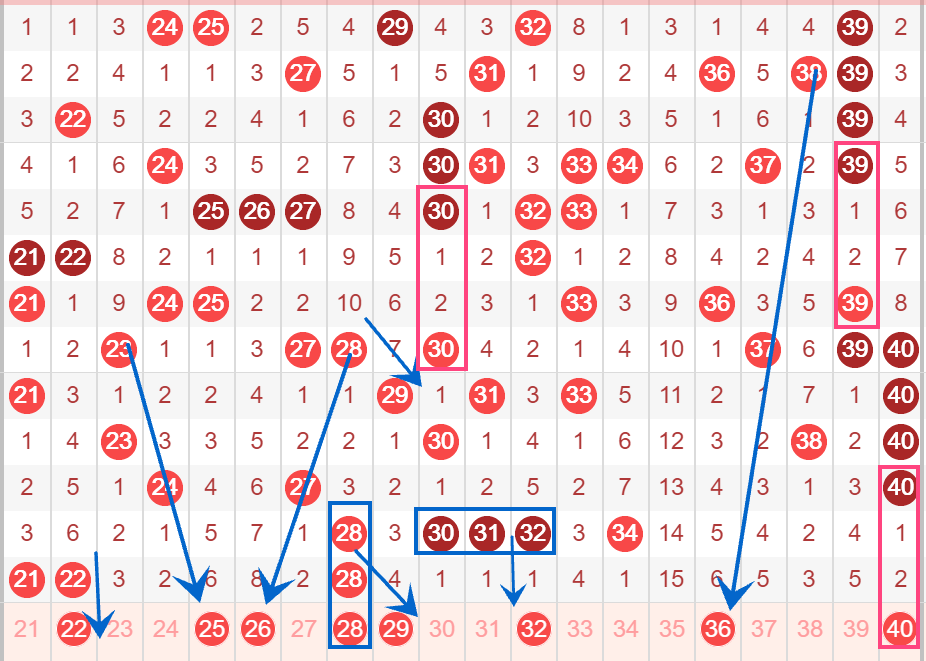 下图为21-40号数字区间走势分析图: