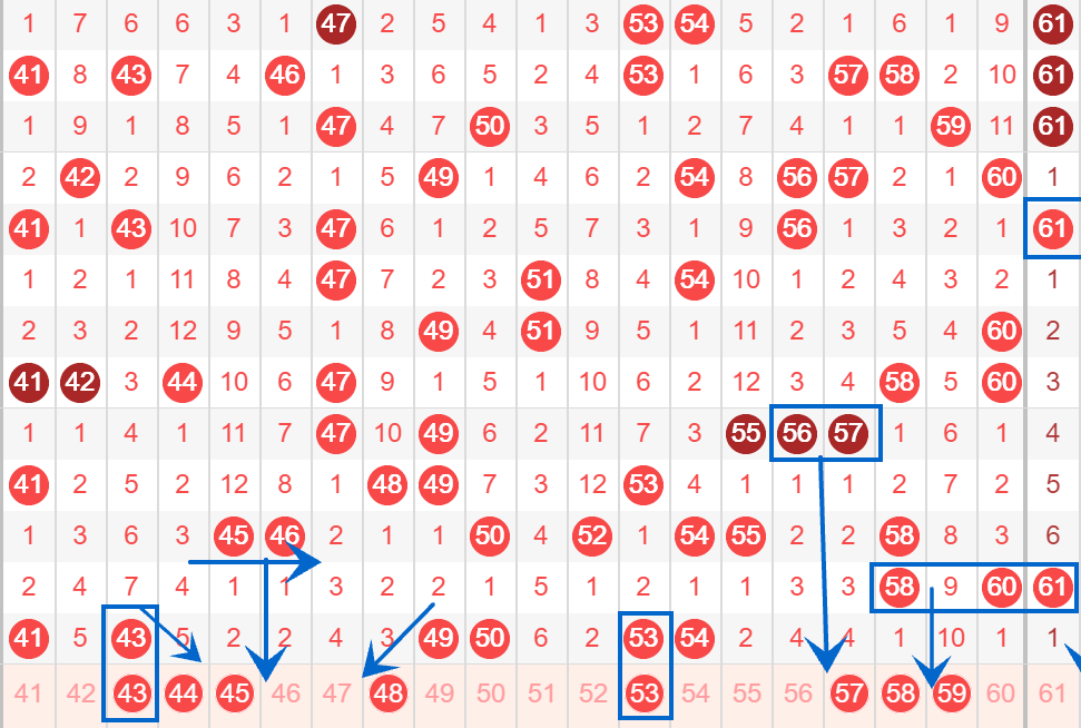 下图为41-60号数字区间走势分析图: