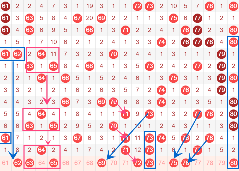 下图为61-70号数字区间走势分析图: