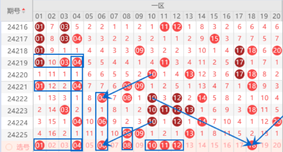 下图为01-20号数字区间走势分析图: