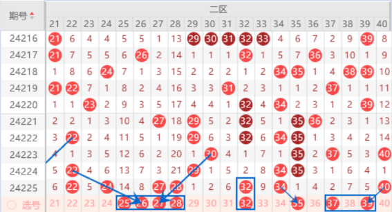 下图为21-40号数字区间走势分析图: