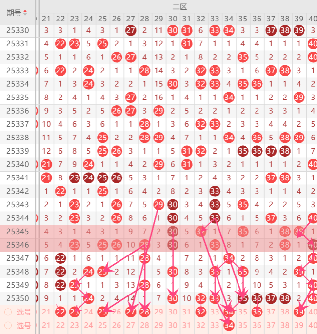二区间注意打底号是21.22.23.25.27.28.31.32.34.36.37.39.中关注3-4码开出机会。