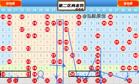 再来看21-40号数字区间分析如下图: