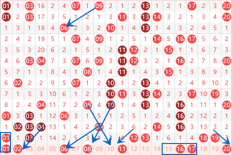 本期的02 36都是梅花号码,我们要注意出一个号码的情况,两个都有机会,不好排号。本期的08 09号数字是属于交叉对称号码,我们可以关注一下,出一个号码的情况。本期的11号数字我们可以注意一下,出号机会还是有的。15 16 17我们要注意了,这里出一个号码的机会也是很大的,我们要重点考虑一下。本期的20号数字是属于空三对称,他的走势就像上期的42号数字,所以本期的出号机会还是有的。
