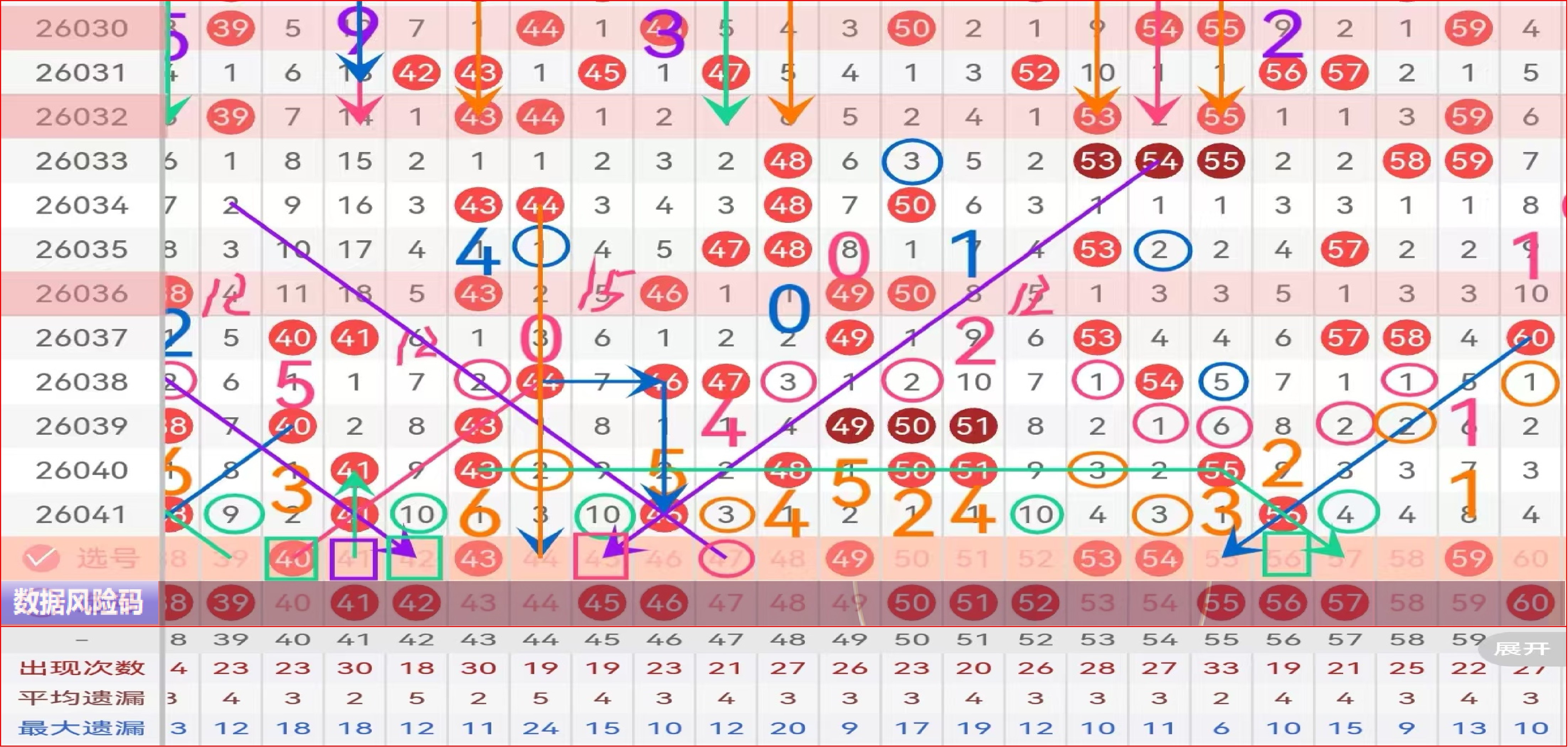 三区间上期出了6个号 码,热态开出;41 42风险码;43高数据,第七次走遗漏1点位,本期43可主做或主防;44倍压走势,小防;孤码46不看重,防守分边码47,47可做两期号;48 49二择一推荐49点位形态码主做,48小防;5字头本期推荐两码53 54连号防守,二择一主做推荐53;尾部58 59 60,60风险码,58 59二择一推荐59主防,58小防;