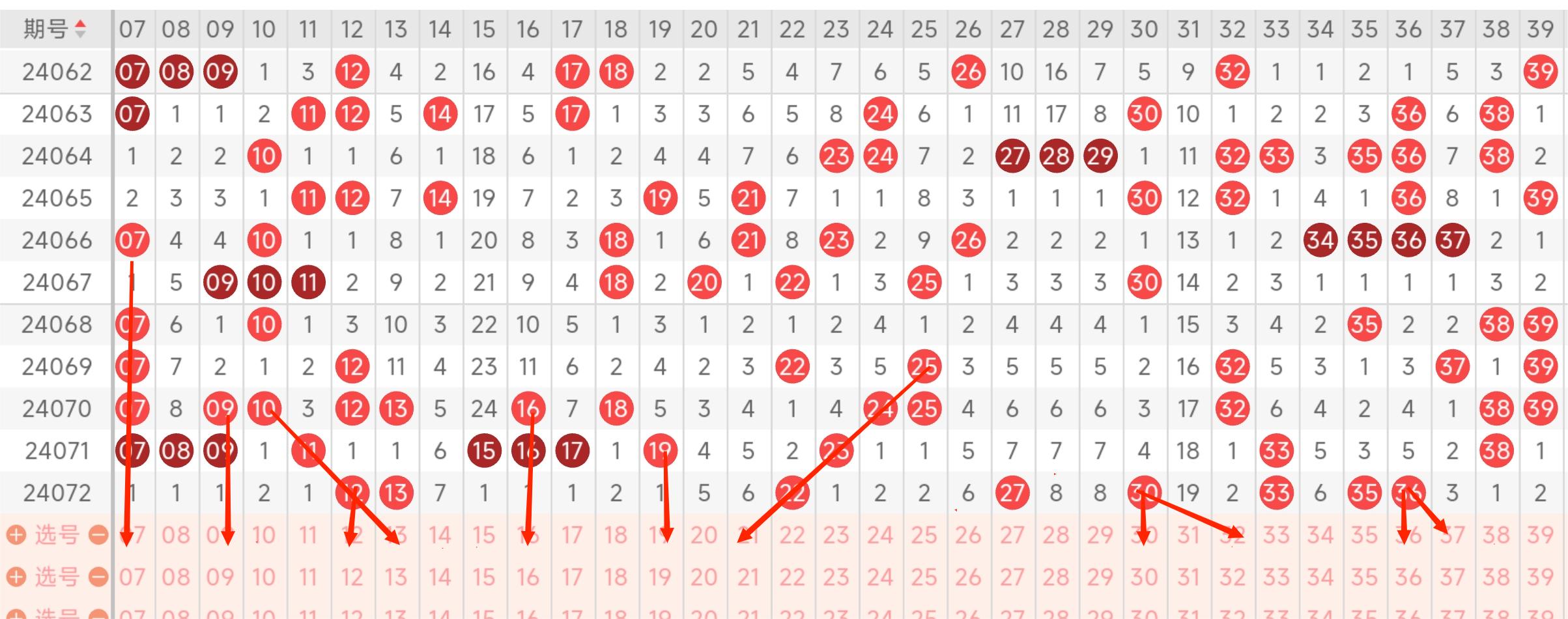 区间分析:24071期仅开出三个号码球和24071期开出六个号码球,二区的热度涨高到开出六个号码球其中的号码球号码球22号球是斜开奖走势开出和号码球33号球是二连出走势开出,本期重点注意斜开奖走势开出号码球21号球的开出走势和号码球33号球的三连出走势和注意号码球36号球的二连出走势(号码球36号球在24063期-24066期是四连出走势)和预防号码球38号球的遗漏一期开出走势和注意号码球32号球的转变开出走势和号码球37号球的转变开出走势!