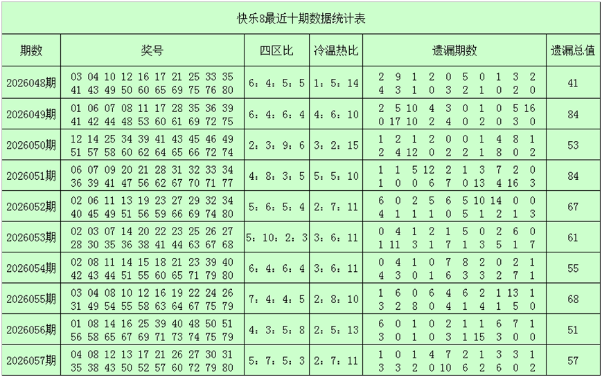 一、快乐8第2026058期奖号分析(定义:遗漏0-2期号码为热码,遗漏3-6期号码为温码,遗漏7期及7期以上号码为冷码,重码为上期开出奖号,邻码为上期没有出现,但与上期奖号差值为1的号码,例如上期开出奖号04,没有出现号码03和05,则本期03和05都为邻码,其它则为孤码。