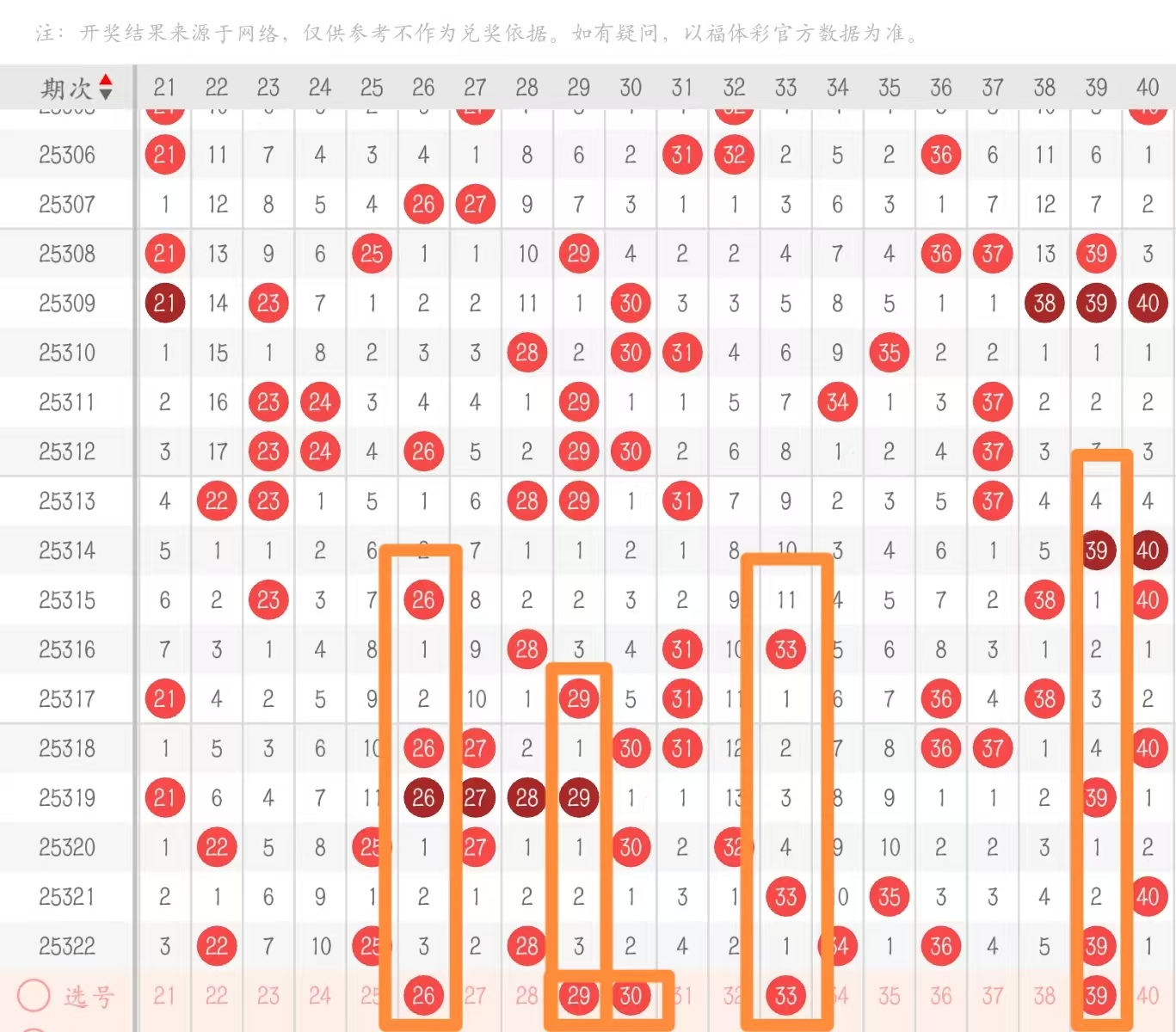二区21—40:整个二区上期在龙头位置给到了空一回补,然后这种情况下尽量去做分边为主,值得注意的是本期在2字头的尾部,29 30这两码形态当中有一码的下号点较强,除此之外,如果说在28 34这个里面能拿到三码的话,条件上面尽量以33带30两个形态号为主,也是一个常见的搭配,回到尾部上面再关联码当中这里出现了两组梅花,他们的分边位置至少要考虑走重的特征,所以说在形态上面建议还是以39为主
