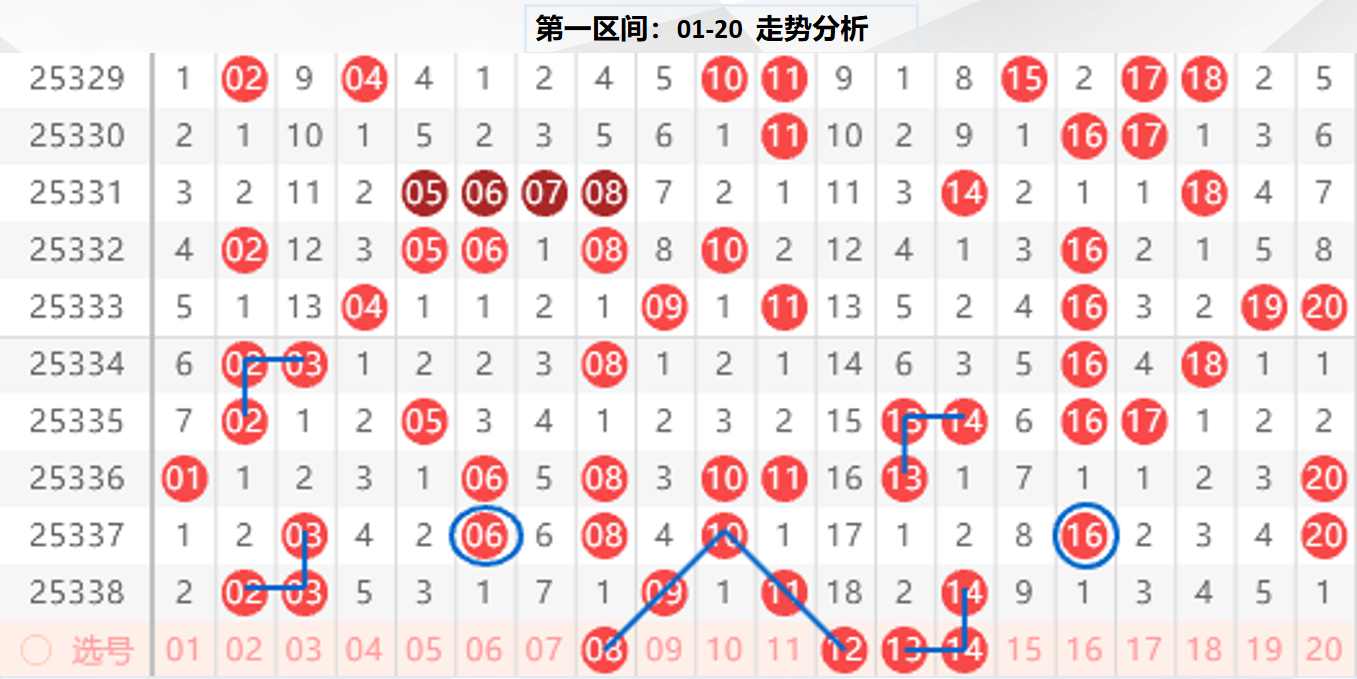一区分析:【01-20】(走势图标注号码非小黄车大底,请谨慎参考,具体思路将在直播间分享讨论)