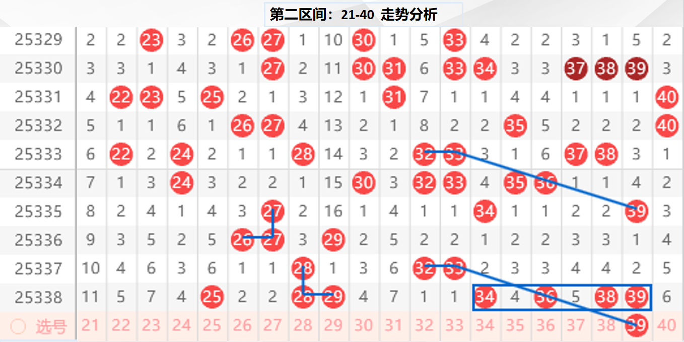 二区分析:【21-40】(走势图标注号码非小黄车大底,请谨慎参考,具体思路将在直播间分享讨论)