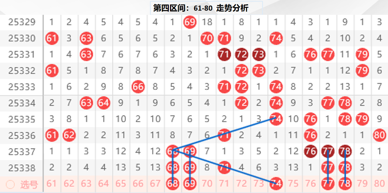 四区分析:【61-80】(走势图标注号码非小黄车大底,请谨慎参考,具体思路将在直播间分享讨论)