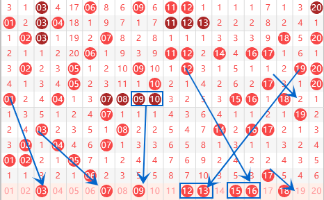 本期的07号数字是属于四斜连号码,本期的四斜连号码有3个,本期应该是有机会出一个的,我们要重点关注一下。连号09 10号数字我们也是要注意落号的,06 09近期的关系是比较密切的,我们可以重点关注一下。本期的12 13号数字我们可以关注一下,15 16号数字也是如此,但是由于近期该区间是比较冷的区域,所以在该区间我们重点做两个号码就行了,不要过多的去做号。