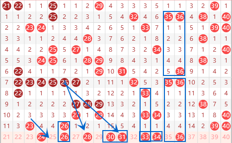 本期的24号数字我们也是要注意一下的,连号24 25和连号35 36都是遗漏4期的连号,本期应该会出一个号码,我们重点关注一下24 36的出号情况就可以了。本期的28 31号数字我们要注意同出的情况,尤其是28号数字是属于132走势,我们可以重点关注一下。连号33 34我们也是要注意落号的,尤其33号数字,上期的44号数字落下来,那么本期的33号数字就有机会了。