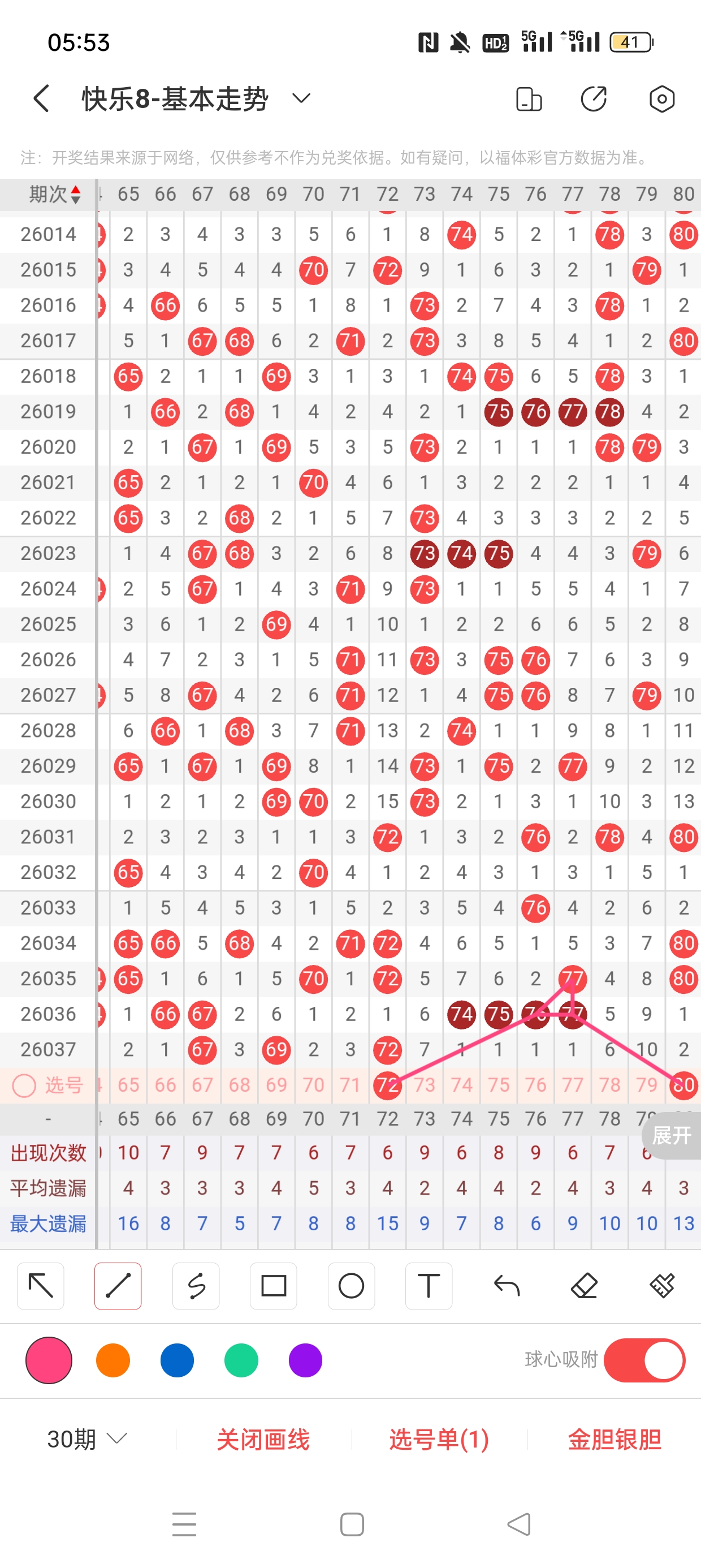 6、分区法:快乐8共分为4个区,一区:1-20,二区:21-40,三区:41-60,四区:61-80。