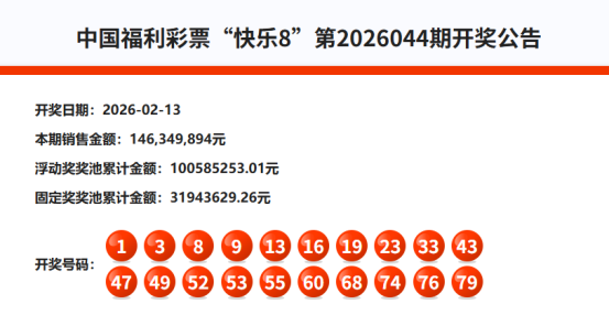 首先我们来回顾快乐8第2026044期开奖号码: