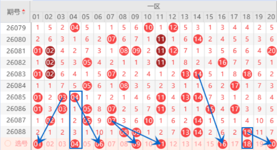 下图为01-20号数字区间走势分析图: