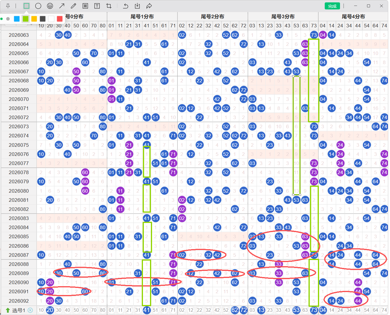 二、快乐8同尾号的分析和号码参考(尾号5到尾号9)