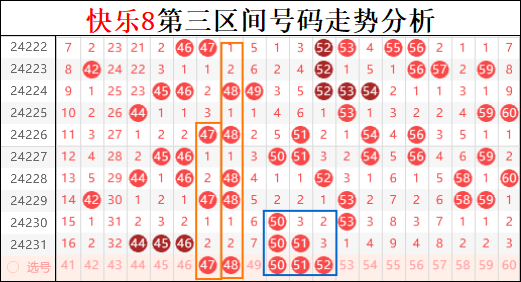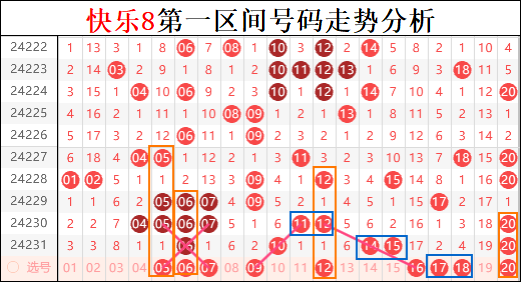 三区在接力二区和四区的两码走势之后,虽然没有开出六码以上的走势,但整体当中以两组连码在形态当中做了延续。但是周期当中出现断区空位比较大,好在昨天两条主线全部回归,那本期走势当中我们就要去考虑形态继续延续的可能性。秉着快乐八出现堆积叠压走势,目前的主线依然有相当的空间,空位可以做适当的防守即可。但随着三区冷码的遗漏越来越大,在本期出现的概率也就越来越高,所以本期走势当中要预防冷码的突然出现。