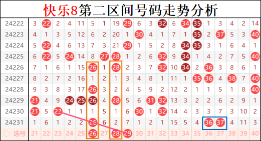 太行老赫快乐8第2024232期走势分析:二码区间变三码