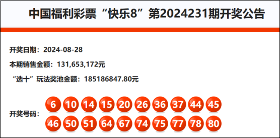 首先我们先来回顾快乐8第2024231期开奖号码: