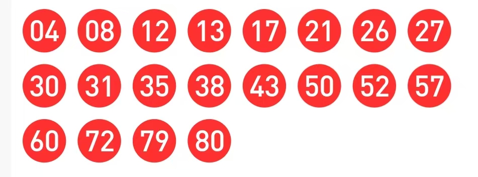 26057期命中9码 08,12,21,31,38,43,50,60,80