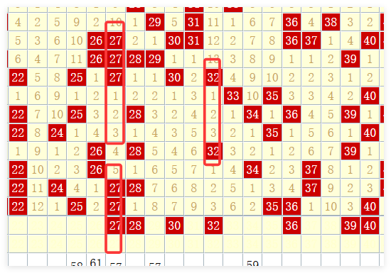 一分区啊,我们通过结构走势图呢,大家推荐几个重要的点位,一个是123的这个点位,一个是九十十一十二十三的这个点位。这是一分区的整体分析。下面我们再看一下分区二分区的分析,我们要重点的关注一下27~36这个空档话,如果是开出大量号码的话,我们还是要重点的看一下几个比较热的一个组合,一个是27号28号,一个是3032组合。那么三十五三六三九四十,这里我们还是主看363940的这样的组合,这是整体二分区的分析