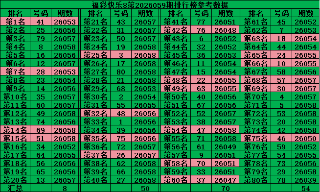 截至2026059期最大遗漏的号码是20期的78号,提取最近20期的数据做为2026060期的参考数据: