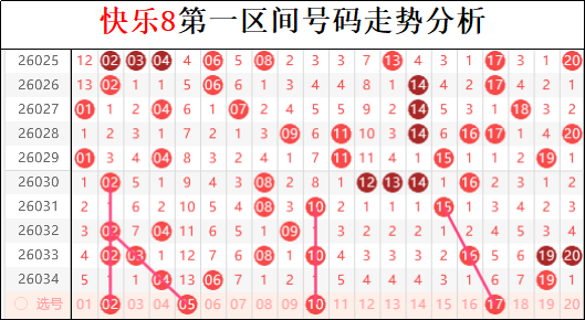 一区上一期再次出现反转趋势,整个区间仅以三码布局走势。且刚刚回补的连码再次从区间消失,本期能否回补还是个未知数,毕竟一区连码的回补最多要两期。所以本期的一区布局上首先关注主线的下拉究竟选择哪一条路线,其次就是空区的回补应该是本期一区的重要点位选择,但是空区无走势,显然做号全凭运气。不过好在目前的一区斜连走势接力,重号走势接力,那也就是说本期的三码中不排除重号的继续下拉,很明显一区三码上都有走势,所以注意选择问题。
