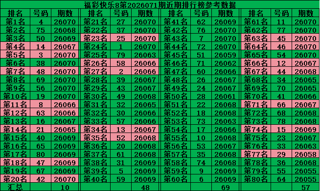 热一区第1-20位(最大位置遗漏是17期的第8位,对应本期号码是:69号)